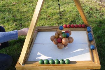 nos jeux retour Disponible À partir de 8 ans Nombre de joueurs : 2 joueurs Taille du jeu : 58 cm x 40 cm Inventaire : 1 plateau de jeu en bois, 9 billes bleus et 9 billes blanches. Objectif du jeu : Réussir à capturer les billes de son Lire la suite